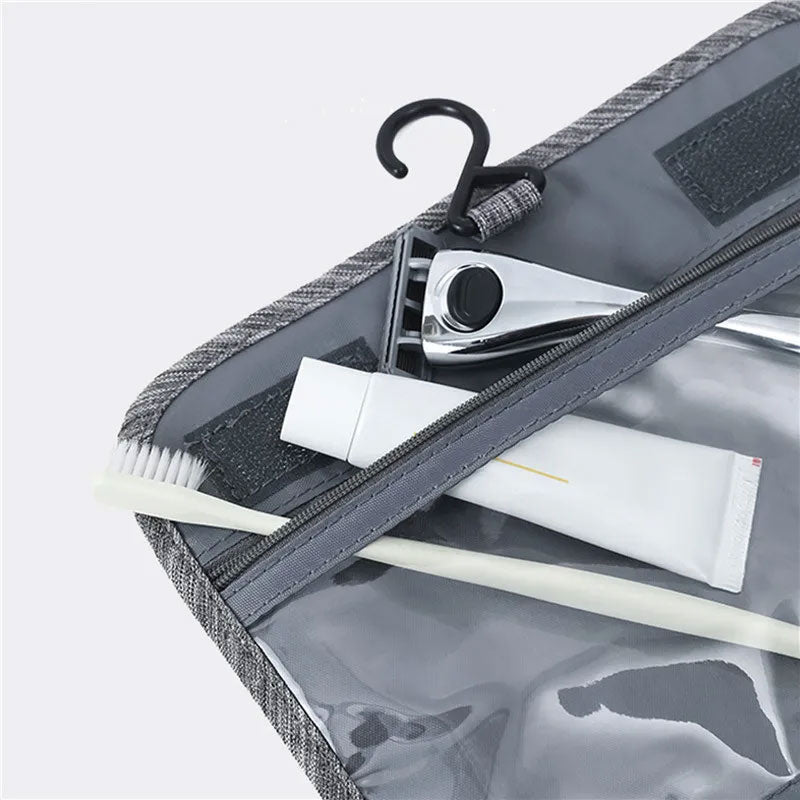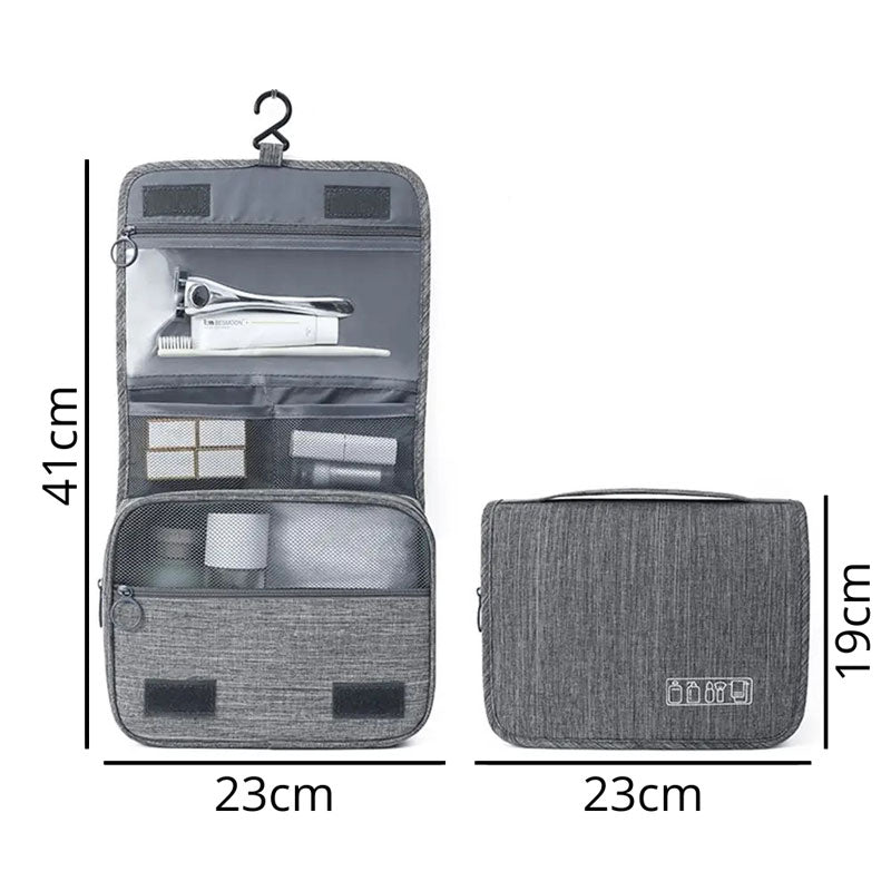 Da chiuso, è una piccola borsetta da viaggio: da portare a mano o da inserire in una valigia.