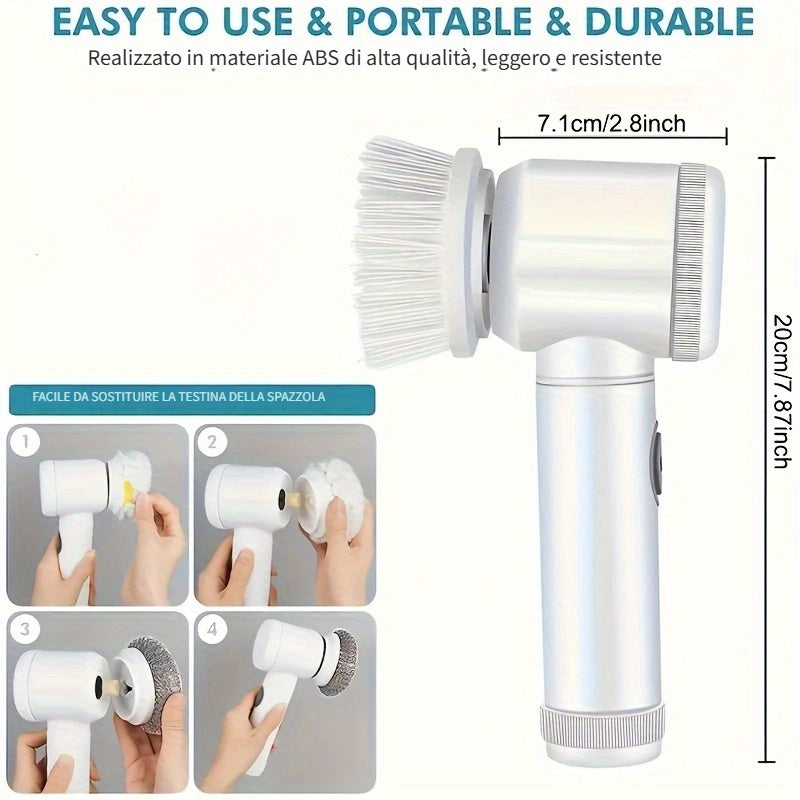 Il Set di Spazzole Elettriche Ricaricabili 5 in 1 è un dispositivo versatile progettato per facilitare le operazioni di pulizia in casa.